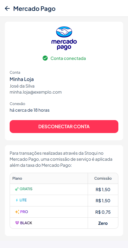 Siga o tutorial abaixo para integrar o meio de pagamento Mercado Pago ao seu app Stoqui e poder oferecer a seus clientes todas as formas de pagamento disponíveis nele. Confira como ficam as taxas neste outro tutorial.